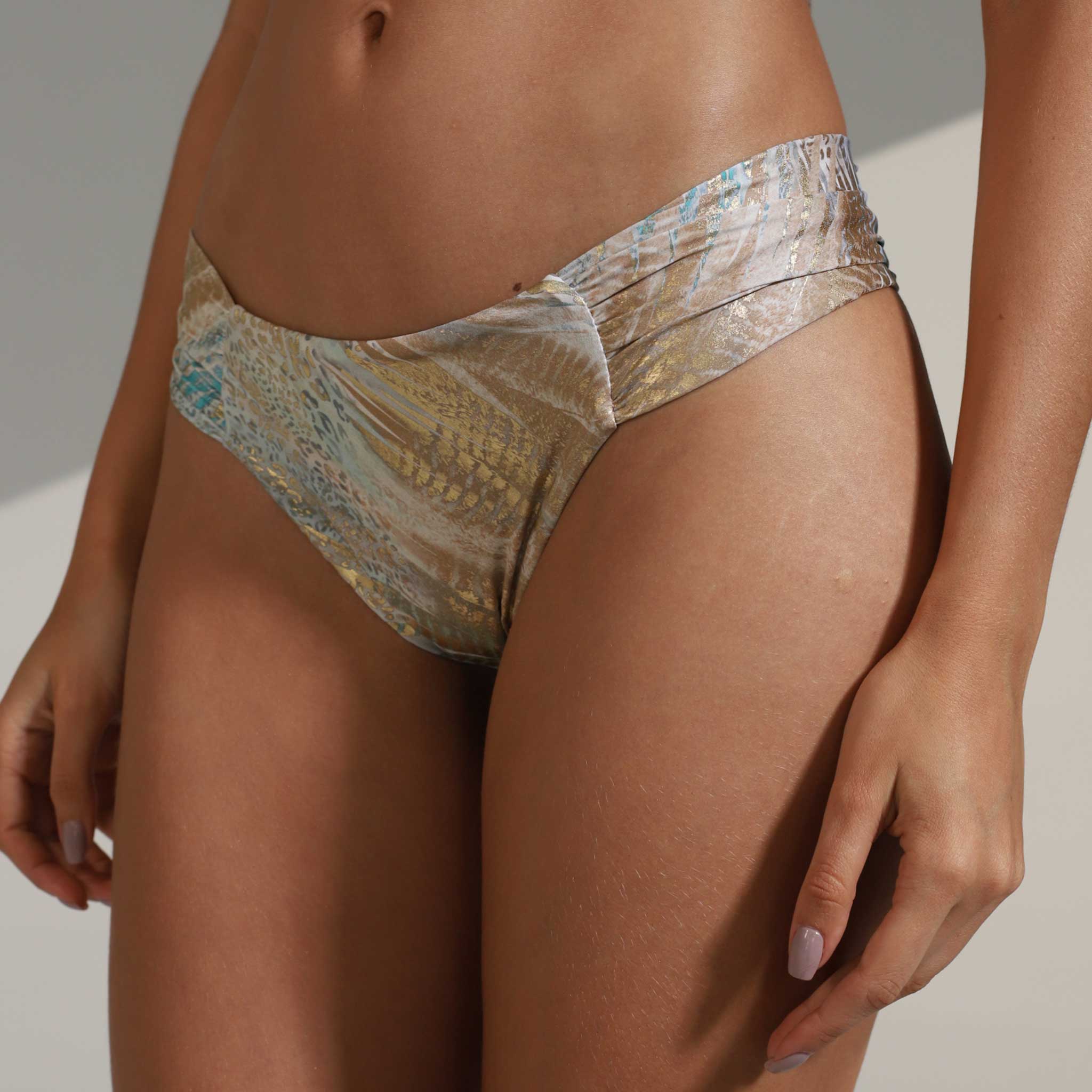 Complementa tu bikini con el calzón de nuestra línea Champagne. Este modelo destaca por su pretina ancha y suave, diseñada para brindar un ajuste seguro y favorecedor en la zona de la cintura. Su corte clásico ofrece una cobertura ideal, permitiéndote moverte con total libertad y confianza en la playa o la piscina.