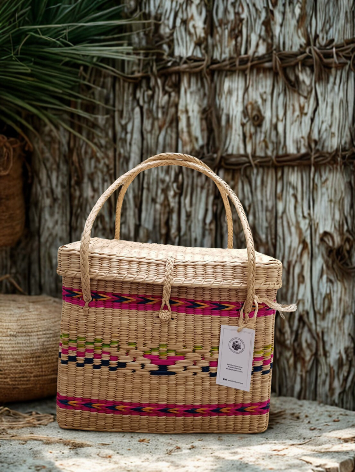 Exclusividad: Al ser hecha a mano, el patrón de colores puede variar ligeramente, haciendo que tu canasta sea única en el mundo.